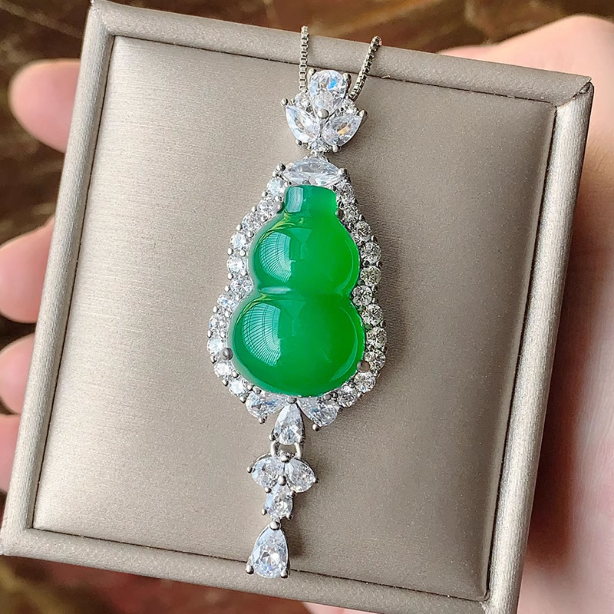Green Jade Gourd Earring Necklace