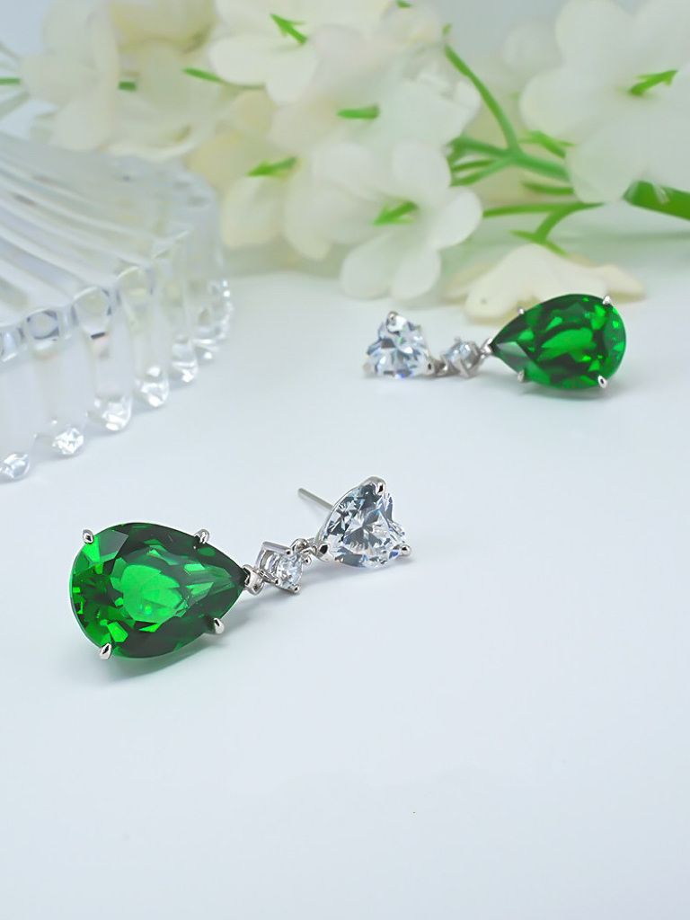 Water droplet emerald earrings