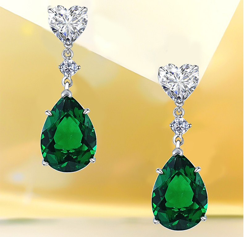 Design: Artificial emerald gemstone, pear shaped cut (10 * 14MM about 8 carats), precise proportion+three-dimensional shape, exquisite inlay shows elegance - Product Philosophy